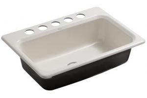 The classic Bakersfield kitchen sink offers a large, deep single-basin with space for even the largest pans and dishes. Constructed of durable KOHLER(R) Cast Iron, the Bakersfield provides elegant simplicity with a wide deck for a faucet and accessories. This undercounter model features a five-hole oversized faucet drilling and is available in an extensive palette of colors.