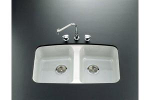 Featuring durable KOHLER(R) Cast Iron construction and a versatile design, the Brookfield is our most popular double-basin kitchen sink. This undercounter model features a five-hole oversized drilling.