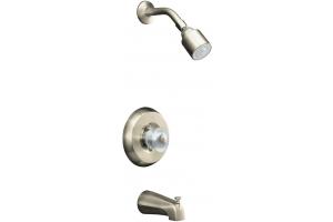 Single-control bath and shower faucet trim shall be of metal construction. Product shall include showerhead with arm and flange, faceplate with acrylic handle, and 4-7/8" (12.4cm) diverter bath spout with N.P.T. or slip-fit connection. Faucet trim shall be Kohler Model K-T15601 and mixing valve shall be Kohler Model K-304, K-306-KS, OR K-308.