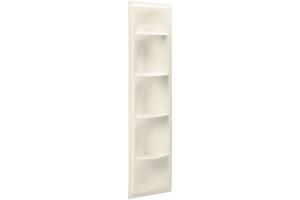 The sculpted shower storage shall be reinforced with fiberglass (FRP). Product shall have a visible footprint that is 14-5/8" (37.1 cm) in width and 59-1/16" (150 cm) in height. Product shall be one-piece configuration with attachment flanges. Product shall include four integral shelves. Product shall be for new construction or complete remodel of tiled showers only. Sculpted shower storage shall be Kohler Model K-1842.
