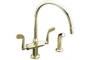 Kohler Essex K-8763-PB Polished Brass Two Wristblade Handle Kitchen Faucet with Sidespray