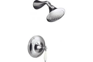 Rite-Temp pressure-balancing single-control shower faucet trim shall be of brass construction. Shower only trim shall include showerhead with arm, and faceplate with traditional handle. Valve only trim shall include faceplate with traditional handle. Faucet trim shall be Kohler Model K-T309 and Rite-Temp valve shall be K-304-_-NA OR K-306-KS-NA HiFlow Rite-Temp valve.