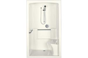 Kohler Freewill K-12110-C-96 Biscuit Barrier-Free Shower Module with Brushed Stainless Steel Grab Bars and Right Seat , 52" X 37-1/2" X 84"