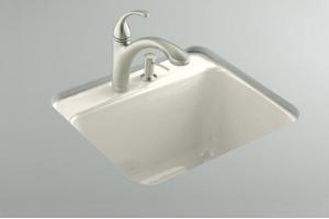 Important note for the Kohler Glen Falls K-6663-3U-KA Black 'n Tan Undercounter Utility Sink with Three-Hole Faucet Drilling