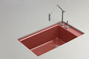 Features of the Kohler Indio K-6410-2K-R1 Roussillon Red Undercounter Single-Basin Sink with Two-Hole Faucet Drilling: