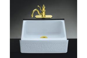 The Interlace kitchen sink reflects the late 19th-century European revival of Oriental motifs in architectural facades. Crafted of fireclay to provide a durable, nonporous product with a hard, glossy finish, this sink is available in a palette of KOHLER colors to complement any décor.