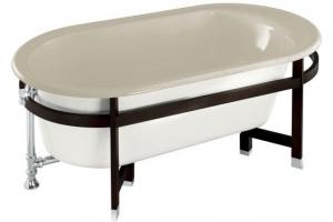 Authentic KOHLER Cast Iron and sleek wood combine for stylish results in the Iron Works Tellieur Suite. Simple and elegant, the Iron Works Tellieur bath brings an air of sheer sophistication to the bathroom. Supported by a Tellieur hard maple frame, this bath is large and inviting. An extra-spacious 36" width and integral lumbar support enhance comfort and relaxation. This White exterior color contrasts dramatically with the rich Black Forest wood surround. Other exterior paint colors are also available to customize your look.