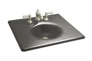 The cast iron lavatory shall be 25-5/8" (65.1 cm) in length and 22-1/4" (56.5 cm) in width. Lavatory shall have integrated top and basin. Lavatory shall be without overflow. Lavatory shall be available with 8" (20.3 cm) centers (-8), 4" (10.2 cm) centers (-4), or single-hole (-1). Lavatory shall be Kohler Model K-3048.