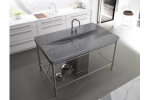 The Iron/Occasions Island provides a fresh, functional alternative to the typical kitchen island. Crafted from durable KOHLER(R) Cast Iron, the island features a seamless, integrated trough and a containment rim for enhanced cleanability and a beautiful appearance. Use the island to prepare meals, entertain guests, or as a breakfast bar. The Iron/Occasions Island offers flexible installation options and can be mounted on common island cabinetry or placed on the optional stainless steel base for a modern feel.