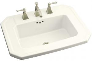 Featuring a rectangular basin and angled-corner design, the Kathryn self-rimming lavatory brings timeless sophistication to your bath or powder room. This model features 8" centers and vitreous china construction for a remarkably clean, sanitary product.