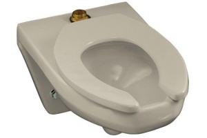 The elongated bowl shall be wall-mount with a 1-1/2" top spud. Bowl shall be made of vitreous china. Bowl shall have 12-3/8" (31.4 cm) x 11-3/8" (28.9 cm) water area. Bowl shall be 1.6 gpf (6 lpf). Bowl shall be ADA compliant when installed at required height of 17" (43.2 cm) - 19" (48.3 cm) from the floor to the top of the seat. Bowl shall have bedpan lugs (-L). Bowl shall have siphon jet. Bowl shall be Kohler Model K-4330.