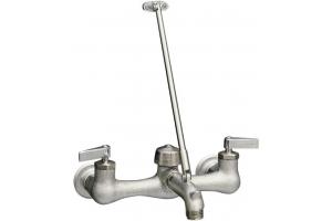Two-handle service sink faucet shall be of brass construction. Faucet shall feature brass valve bodies. Faucet shall also feature Valvet valves. Product shall include 8" centers, 4-5/8" threaded spout for hose connection, 7-1/4" wall-to-spout outlet, lever handles, pail hook, vacuum breaker, wall brace, and internal N.P.T. connections. Faucet shall be Kohler Model K-8907.