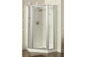 Combined with other products in the Memoirs Suite, the Memoirs neo-angle shower door completes a fully integrated showering and design solution. The unit features 3/4" adjustability per side, right or left door swing, a full-length magnetic seal, and stainless steel hardware that resists rusting and corrosion. Additionally, a soft-touch foam handle insert softens the feel of the handle and makes it easier to grab when your hands are wet or soapy. This model includes Frosted glass.