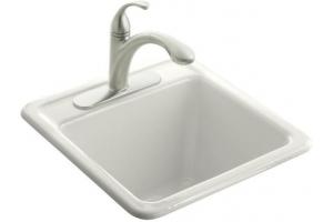 The self-rimming utility sink shall be 21" (53.3 cm) in length and 22" (55.9 cm) in width. Sink shall be made of cast iron with acid-resistant enamel finish. Sink shall be single compartment. Sink shall be 1-hole (-1), 2-hole (-2), or 3-hole (-3). Sink shall be Kohler Model K-6655.