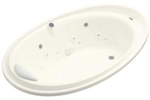 The bath whirlpool shall be 72" (182.9 cm) in length, 46" (116.8 cm) in width, and 23-3/16" (58.9 cm) in height. Bath whirlpool shall be made of acrylic. Bath whirlpool shall have 6 Flexjets, 8 effervescence ports, 4 chromatherapy lights, 2 hp variable speed pump, 1.5 kW heater, back-lit user keypad and remote control. Bath whirlpool shall have 10 color-matched sequencing Bodyssage™ backjets and 2 pulsating neckjets with pillow. Bath whirlpool overflows into horizontal overflow drain for maximum bathing depth. Bath whirlpool shall have a 19-1/4" (48. 9 cm) deep bathing well. Bath whirlpool shall be UL listed. Bath whirlpool shall coordinate with Purist™ Suite. Bath whirlpool shall be Kohler Model K-1110-V.