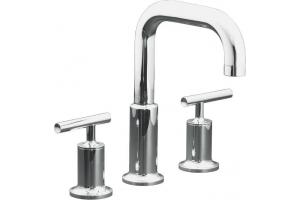 Purist faucets combine simple, architectural forms with sensual design lines and careful detailing. Both sculptural and functional, this bath- or deck-mount lavatory trim promises inviting visual appeal of classic modernity, and features a 7-1/2" spout and two cross handles.