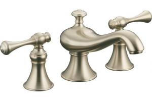 This widespread faucet brings the Revival look to your home. It features two traditional lever handles that are pre-assembled on KOHLER ceramic disc valves for easy installation on 8" - 16" centers. The KOHLER finish protects the solid brass construction against corrosion and tarnishing. It is a fluidly designed faucet that is easy to clean and convenient to use.