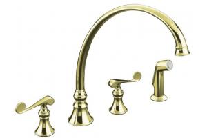 Features of the Kohler Revival K-16111-4-AF Vibrant French Gold Kitchen Sink Faucet with 11-13/16" Spout, Sidespray and Scroll Lever Handles: