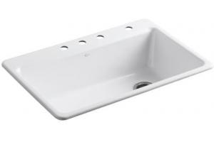Features of the Kohler Riverby K-5871-4-K4 Cashmere Self-Rimming Single Basin Kitchen Sink with Four-Hole Faucet Drilling: