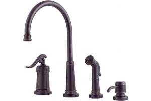 Features of the Pfister T26-4YPY Ashfield Tuscan Bronze Single Handle Kitchen Faucet with Side Spray & Soap Dispenser