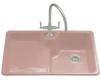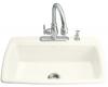 Carrizo™ self-rimming kitchen sink with single-hole faucet drilling Basin depth: 9" on right, 4-1/2" on left 33"L x 22"H Stepped single-basin design Self-rimming installation Single-hole…