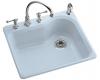 Meadowland™ self-rimming kitchen sink with four-hole faucet drilling Constructed of durable KOHLER® Cast Iron, the compact Meadowland kitchen sink has a…