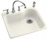 Meadowland™ self-rimming kitchen sink with four-hole faucet drilling Constructed of durable KOHLER® Cast Iron, the compact Meadowland kitchen sink has…
