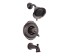 Features of the Delta 144984-OB Porter Oil Rubbed Bronze Monitor 14 Series Tub & Shower Trim: Pull-up tub spout Single function pressure balance cartridge Universal fittings ADA Compliant …