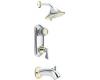 8" Fixed Cast Brass Valve Body, 1/2" union inlets X 1/2" I.P. outlets. Includes handles, flanges, standard showerhead, threaded tub…