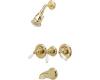 8" Fixed Cast Brass Valve Body, 1/2" sweat inlets X 1/2" sweat outlets. Includes handles, flanges, standard showerhead, threaded tub…