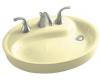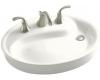 Yin Yang™ Wading Pool© lavatory with 4" centers and overflow Countertop installation Vitreous china 21"L x 18"H 4" centers Unique, shallow basin Integral faucet deck…